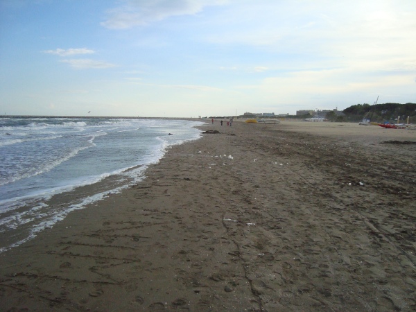 Если говорить о самом море, то, если честно, оно на любителя. Пляж песчаный, песок обычный, не кварцевый, как на Лазурном берегу, поэтому создается впечатление, что оно мутное. Но это так потому, что на большом протяжении море очень мелкое, пока идешь к глубине, забываешь, зачем пошел. Зато с маленькими детьми совершенное раздолье. Фотографии у меня майские, во время похолодания, но показывают, какие там огромные пляжи. Пляжи сами по себе бесплатные, но платят за зонтик и лежаки. Если просто на песочке у моря лежишь, то платить не надо. У большинства отелей и апартаментов зонтики и лежаки входит уже в стоимость проживания, очень удобно.