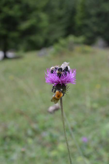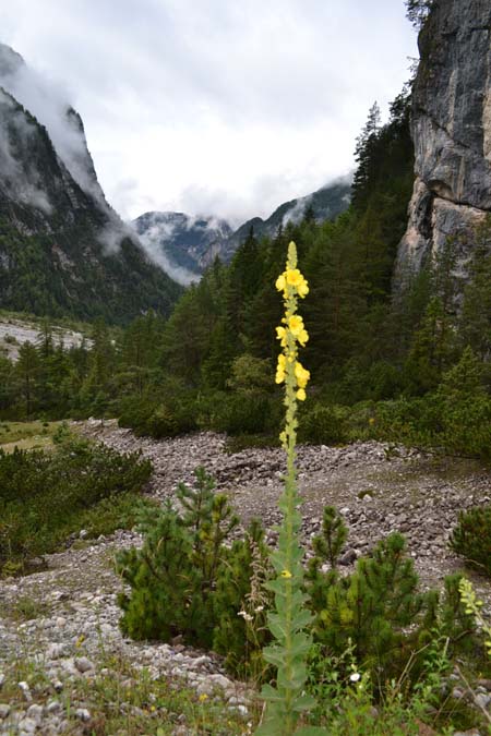 На самом деле, от этого рифуджио начинается очень много красивейших маршрутов, в том числе к Casera Pramaggiore, где, как сказал Джанни гарантировано увидеть косуль. Но все эти тропы обозначены пунктиром, а значит на них потребуется несколько больше времени и сил. Наш же путь лежал к Casera Senons. Небыстрым шагом по довольно хорошей дороге мы дошли часа за полтора, естественно, останавливаясь у каждого красивого цветочка.