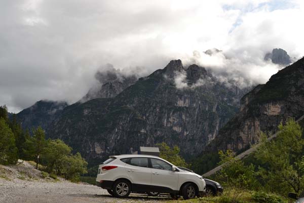 Этот день по прогнозам должен был быть хорошим и меня хотели отвезти и отвести в знаковое место к Il Campanile del Val Montagna. Это скала по форме кампанилы, которая изображена на всех туристических открытках. Очень я туда хотела. И мы даже доехали до стоянки у Rifugio Pordenone. Но все горы оказались в облаках, ничего не видно.