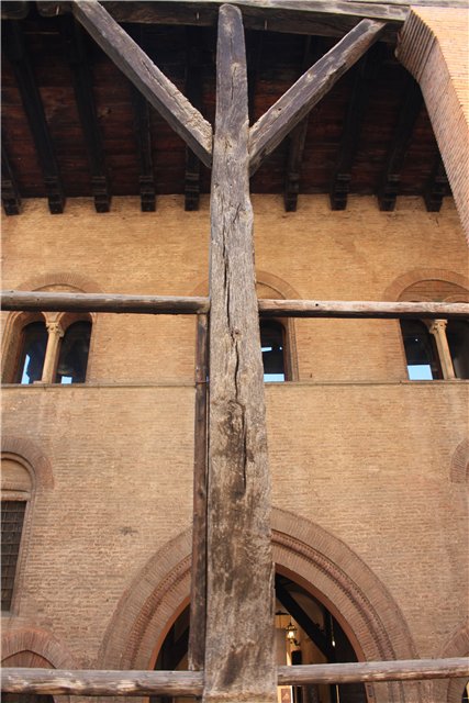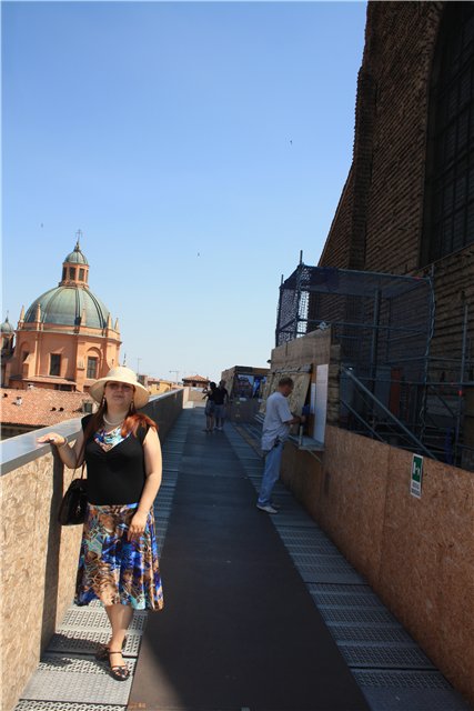 Фасад базилики Сан-Петронио на пьяцца Маджоре закрыт лесами. Еси подписать договор, о том, что ты не будешь делать глупостей и заплатить 3 евро, тебя пустят на смотровую площадку наверху этих лесов.