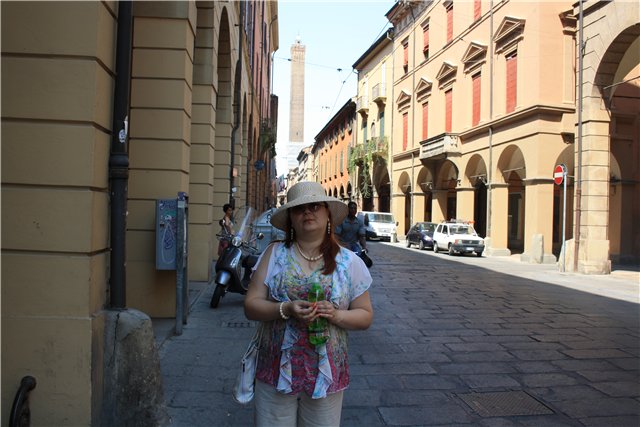 После посещения башни Асинелли мы направились в сторону центральной площади Маджоре. Посмотреть нам толком ничего более не удалось, поэтому мы решили поискать кафе, перекусить и возвращаться в гостиницу. Там где уица Уго Басси упирается в уицу Маркони отыскалась уютная кафешечка. Мы даже немного побеседовали с хозяйкой по итальянски, перед тем как перейти на русский. Хозяйку зовут Оксана. Она украинка. Живет в Болонии. Пока бездельники итальянцы отдыхают у этого кафе нет конкурентов. О всему прочему еда в кафе очень качественная и недорогая. Оксана показала нам дорогу к автобусной остановке и предупредила, что по праздникам многие маршруты автобусов меняются, так чтобы центр города стал полностью пешеходным. К чему это, мы поначалу не поняли. Доехали до отеля и поужинав вырубились, переполненные эмоциями от знакомства с городом.