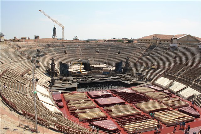 Изначально Арена использовалась для гладиаторских боев, но до того, как стать величайшей оперной сценой, там жгли еретиков и устраивали бои с быками. Так как землетрясение 1117 года разрушило внешнее кольцо Арены, оно послужило строительным материалом для соседних зданий.