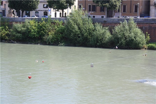 Наша прогулка началась на набережной реки. Карты города мы к этому времени еще не раздобыли, но визуально достаточно быстро определили, что соседний мост, это путь в центр города. Вы наверно видели достаточное количество мостов с висячими замками, которые туда вешают молодожены. С учетом того, что с легкой руки Шекспира Верона стала родиной Ромео и Джульетты, вес замков, повешенных на мосты города, довольно быстро обвалил бы их в быстрые воды реки. Поэтому власти придумали тросы через реку по соседству с мостами. Вешайте на здоровье замки, люди добрые, с нас не убудет. Места не хватает? Еще трос повесим. А к ближе зиме сей металлолом сдадим, чтобы не портил внешний вид ржавыми боками.