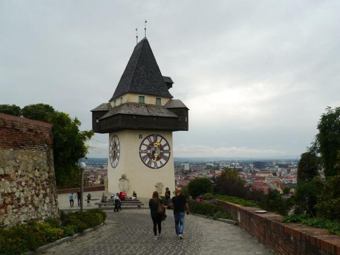 Уже много лет Часовая башня является символом Граца. Датой её постройки считается 1265 год, а тот облик, который мы можем наблюдать сейчас, башня приобрела в 1560 году. Часы установили значительно позже — в 1712 году. Каждая из четырёх сторон башни имеет свой циферблат, на котором изначально была лишь одна стрелка — часовая. Позже добавили ещё и минутную, которая непривычно короче часовой, поэтому, взглянув на эти часы, сначала испытываешь удивление, и только потом вспоминаешь об этой особенности.