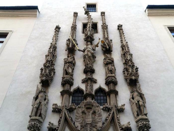 Далее мы направились к Старой Ратуше, построенной в XIII веке. На протяжении веков Ратушу без конца достраивали, перестраивали, ремонтировали, в результате чего в её облике каких только стилей не намешано.