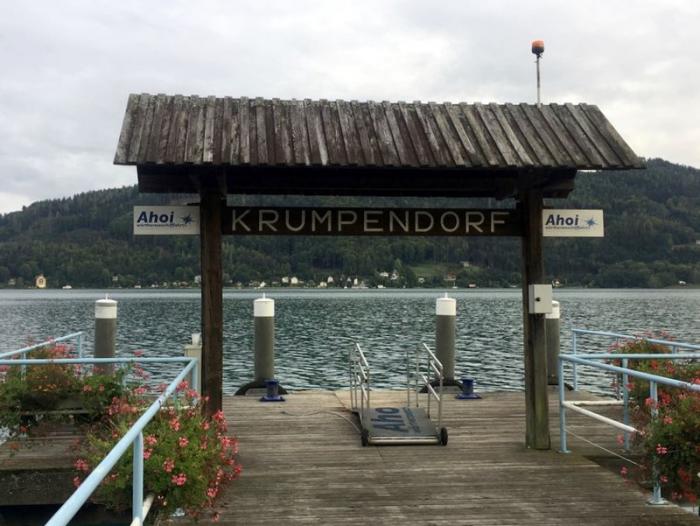 По пути нам встретилось озеро Вёртерзе, решили заехать немного прогуляться и размять ножки. Отклоняться от курса не пришлось, так как озеро тянется вдоль дороги. Съехали в районе городка Крумпендорф, оставили машину на пустынной парковке и, пройдя по тропинке сквозь жиденькую полоску леса, очутились на набережной, где так и ахнули от открывшейся нашему взору красоты! Озеро настолько чисто и прозрачно, что видно каждый камушек, вокруг горы в лёгкой дымке. А воздух...!