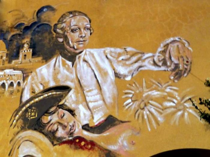 С удовольствием прогулялись по узким мощённым улочкам с разноцветными домиками. Фасады многих из них украшают картины, изображающие эпизоды фильмов Феллини.