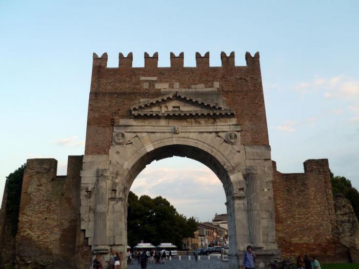 Римини весьма богат на архитектурные и исторические памятники. Первым на нашем пути возник знаменитый Мост Тиберия. Его строительство началось ещё во времена Римской Империи и длилось с 14 по 21 год н.э. Никаких изысков в его облике нет, но глаз не оторвать! Приземистый, мощный, могучий…