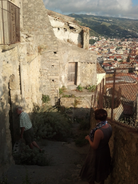 Вторую половину дня мы потратили на гуляние по равнинной части Амантеа (она более новая, там есть куча кафе и магазинов). Купив на ужин салями, опять окорок хамон, сыр и оливки пошли ужинать в гостиницу. У читателя может возникнуть вопрос «а почему опять одно и то же?», а у меня уже готов ответ: «Да просто потому, что больше там ничего нет». В городе довольно много маленьких магазинчиков, которые торгуют местными деликатесами, и там можно купить только этот джентльменский набор (окорок/салями/ветчина + сыр + оливки/вяленые помидоры), пасту в рассчёт не беру, т.к. готовить её в отеле негде, а грызть сырой не много удовольствия. Если хочется молочного--то это только в супермаркет, но и там выбор не в пример нашему, российскому. Есть и фрукты, но какие-то они подозрительно дорогие для юга, а половина — неспелая. Продают там также и сырое мясо, но как-то его мало. Зато вот всякой пасты — годовой запас, изобилие! Сухарики или подсушенный хлеб популярен, булки с корочкой, что не угрызёшь, и приходиться ломать… В кафе: пица, пица, пица, бутерброды, пица, пица, пица, мороженое. В общем на наш вкус итальянская кухня показалась скудна, не разнообразна и местами невкусна.