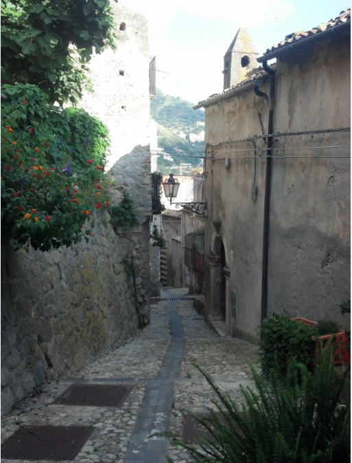 После обеда, договорившись с персоналом, мы заказали мини-машину, которая должна была отвезти нас в старую часть города, на гору (это бесплатная услуга от отеля). Но машину мы так и не увидели: она где-то задерживалась, и парень с ресепшена отвёз нас на своей абсолютно бесплатно и порекомендовал лучшее кафе с лучшим мороженым. Мороженое было действительно лучшее из тех, что мы пробовали в Италии!
