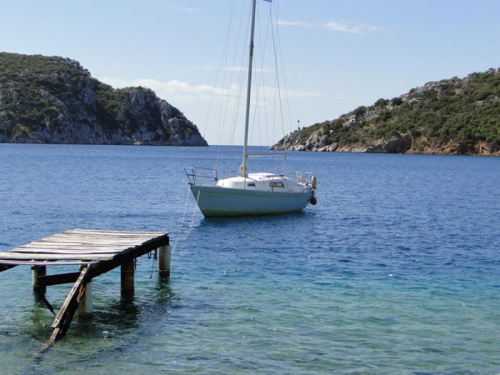Познакомились с Анной, хозяйкой отеля, заселились, первое впечатление- понравилось! Отправились купаться, мы ждали этого целый год, тоже море, чистое, прозрачное, незабываемого цвета! После отправились на ужин, а собственно и обед, нашли самую дальнюю таверну и заказали еды. Первое впечатление о самой деревне, двоякое, тихо спокойно, но как-то совсем безлюдно, и бухта совсем закрытая, только с узким входом. На улице не жарко, 26 градусов. Муж даже расстроился, сказал, что надо ехать в сторону Афин, там теплее….Но это было лишь первое впечатление, которое на следующий, же день было выкинуто из головы. Пробег за день 600 км.