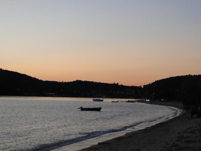 После обеда еле доползли до номера, переоделись, на этом экономия топлива была закончена, поехали искать красивые места на мыс нашего «пальца».Купаться вернулись на местный пляж, и вечером поехали в соседний поселок (в Торони) в магазинчик, в Порто Куфо, конечно, есть магазин, но он маленький и мы решили найти поболе. Купили фруктов, сыр для жарки (халуми), йогурт и сладости. В выборе продуктов, нам помогла прошлогодняя поездка к друзьям, которые прожили в Афинах 3 года и знали лучшие продукты, что покупать, а что не стоит. Закупились, как профи, так скажем))). Вернулись уже темным вечером, поели фруктов и спать. Наша бухта.