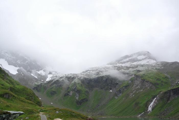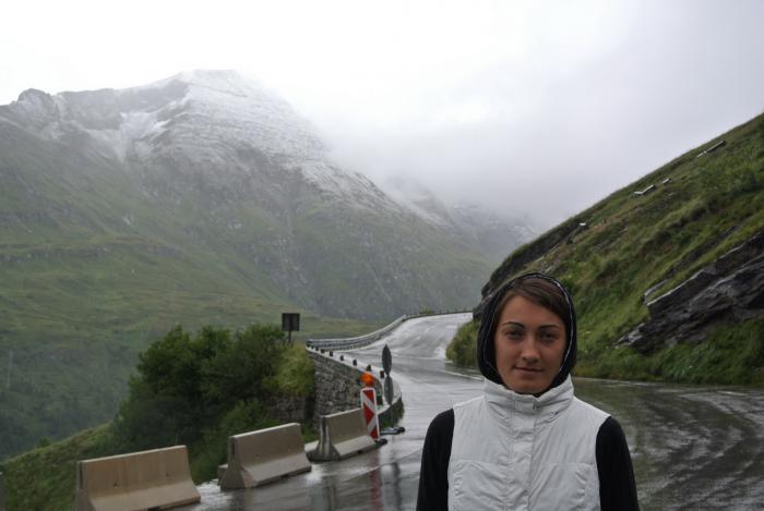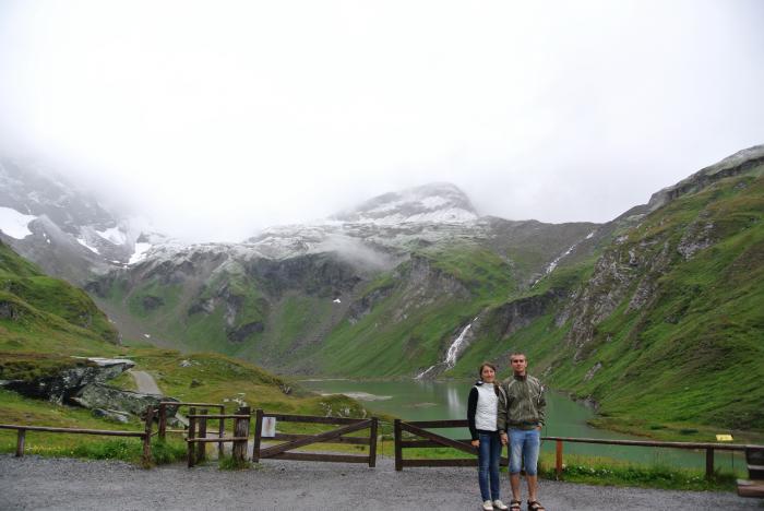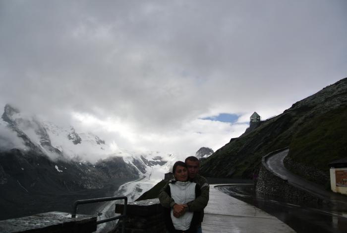 Машины всё прибывали, каждый турист считал своим долгом задать кассирше всё тот же вопрос и в ответ получал всё тот же красноречивый жест. Никакого положительного движения не было, и мы решили хотя бы сфотографироваться у ворот. Там встретили соотечественников – байкеров (один москвич, другой из Екатеринбурга), пообщались. Они ждать не стали, поехали искать кемпинг, отложив посещение дороги на утро. Мы же после проезда через Гроссглокнер планировали добраться до Праги. Уже потом я осознала всю авантюрность этой затеи. А тогда пошла на поводу у сына, который доказывал рациональность принятого решения. Пока мы переживали это «смятение чувств», запивая его чаем из термоса, снег на перевале прекратился, и кассир открыла ворота в «рай». Итак, начинаем взбираться на перевал. Писать про все серпантины, обрывы, лужайки, водопады, ледник и прочие красоты не буду. Фотографии говорят сами за себя.