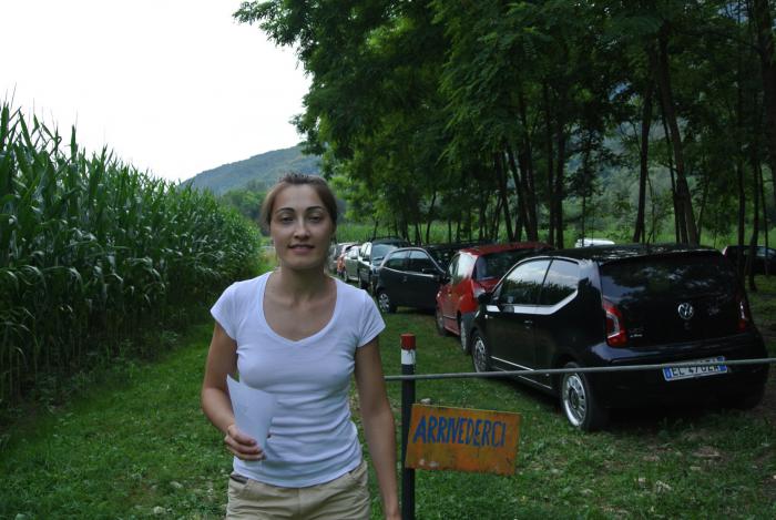 09.08.2015. Утром нас ждал сладкий итальянский завтрак, накрытый в саду – хлеб с сыром, слоёные сладкие пирожки, хлопья. Мы планировали поехать на остров Градо, по пути посетив город Аквилею, и полежать на пляже. Но Паула «отправила» нас в городок Пальманова, в примерно 10 км к северу от Ногаредо в туристический центр, где можно взять бесплатную информацию о достопримечательностях региона с подробными картами местности. По пути в Пальманова наш навигатор «пошутил». В какой-то момент он увёл нас с основной дороги куда-то вправо, вскоре дорога и вовсе закончилась и мы поехали по просёлку, потом въехали в кукурузное поле и оказались как бы в тоннеле из кукурузы. В конце-концов, очутились на заднем дворе какого-то дома. Там под зонтиком сидела группа итальянских граждан и мирно пила кофе (или не кофе). Большими круглыми глазами они смотрели на автомобиль с российскими номерами, который въехал из кукурузы к ним во двор, и дальше через их ворота выехал на дорогу. В итоге, сделав такой хитрый трюк, мы оказались на той же трассе.