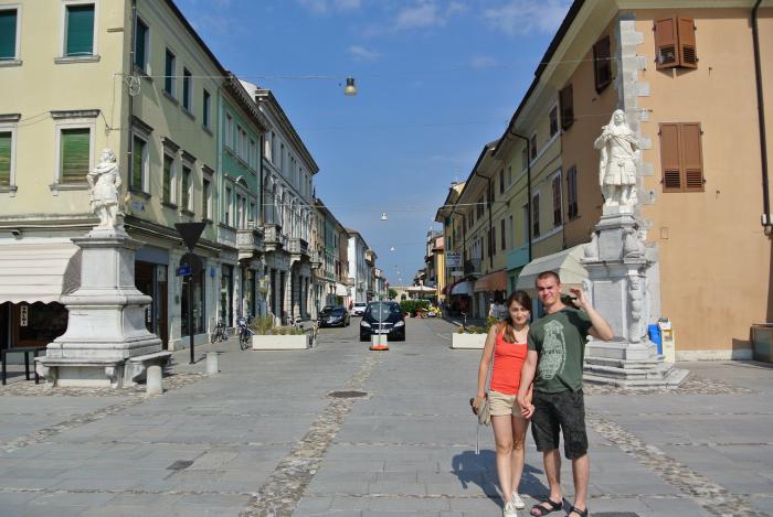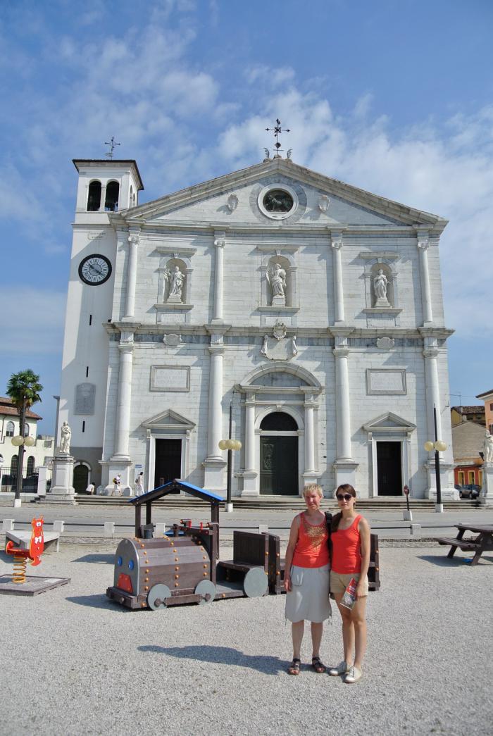 Мы побродили по городку, зашли в туристический центр, набрали кучу карт и проспектом и пошли гулять по фортификациям. По ним предлагаются пешеходные и велосипедные маршруты. Кроме того, на выходе из ворот Порта Удине был музей оружия, в него мы тоже заглянули. Хотя весь (или вся?) Пальманова фактически музей. Мы ничуть не пожалели, что поехали туда. Вернувшись в Ногаредо, собрали пляжные принадлежности и отправились на остров Градо. По пути заехали в один из самых больших «мертвых городов» Италии – Аквилею.