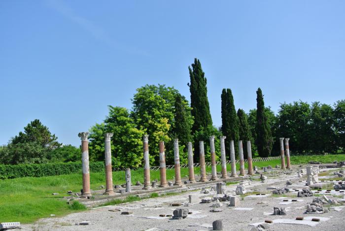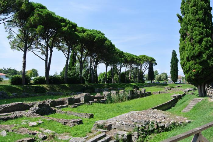 Он был основан во II веке до нашей эры как римский форпост на территории племени венетов и в то время по своей значимости был четвертым в Италии. В настоящее время сам город – это часть огромной археологической зоны, с руинами, раскопами и древними достопримечательностями. И работы тут археологам непочатый край.
