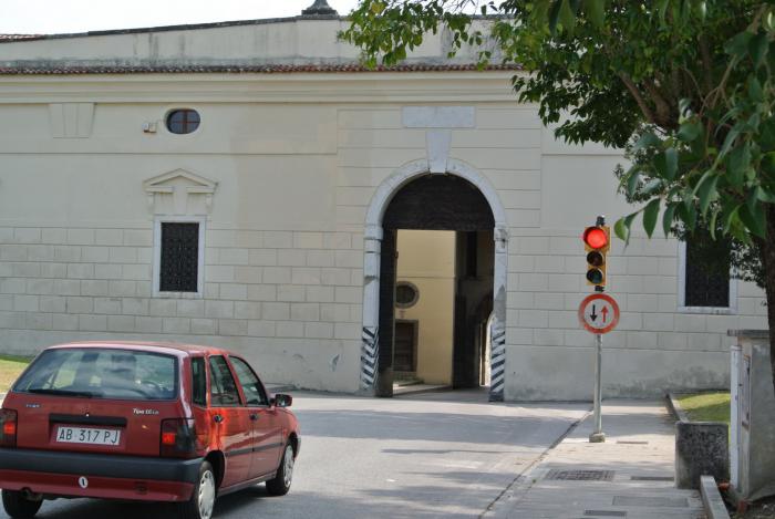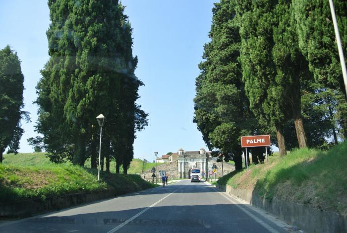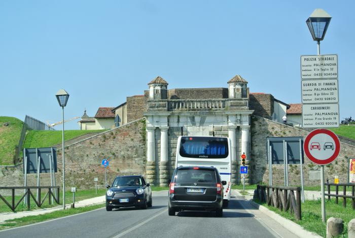 А у ворот Порта Удине сохранилось огромное колесо для подъема подвесного моста. Пальманова – идеально симметричный город, его центральная площадь имеет форму шестиугольной звезды, от неё радиально расходятся улицы в направлении крепостных стен. В центре площади – штандарт, как символ крепости и красивый Кафедральный собор.