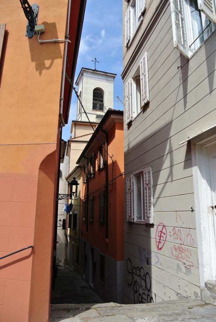 Рядом с замком сохранились развалины эпохи Римской империи. Потом мы решили идти к Большому каналу. С холма мы его видели, но начали спускаться к центру, то очутились в этаком лабиринте узких каменистых улочек, немного потеряли направление и, вдруг, обнаружили, что идём по Via del Teatro Romano и вот он сам этот театр, на обычной городской улице. Вроде так, невзначай, прикоснулись к древности.