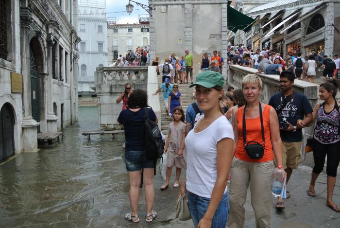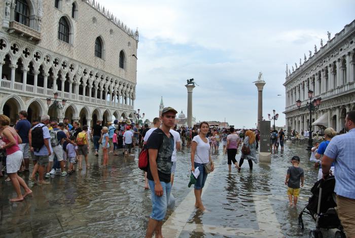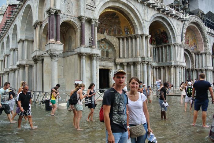 Август оправдал свой статус высокого сезона. По мере приближения к центру Венеции, создавалось ощущение, что находимся в переполненном автобусе. Толпа была и на площади Сан Марко, причём площадь была подтоплена. Поистине «Что поражает в Венеции, так это вода!», как сказал кто-то из отечественных юмористов.