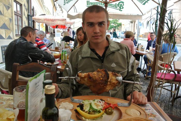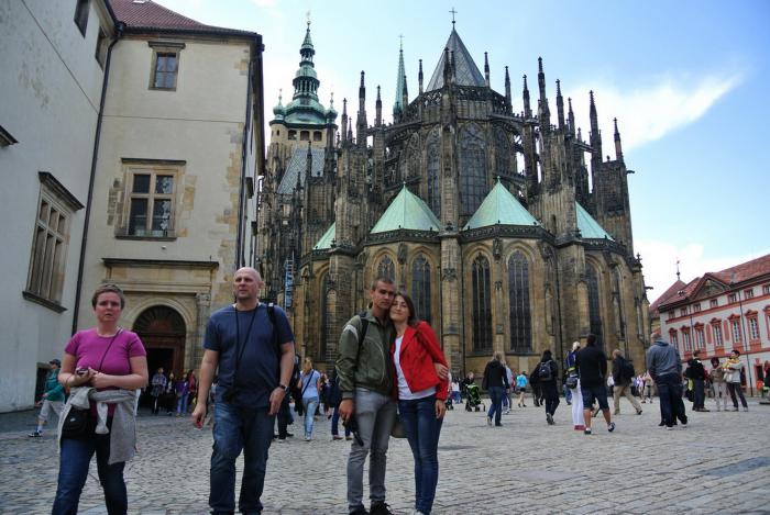 Выехав через северные ворота, решили сделать остановку, поесть, переварить увиденное и прочувствованное. Остановились в одном из ресторанчиков и за 36 евро так наелись! Дело в том, что мы выбрали каждый по блюду, а потом выяснилось, что к каждому блюду полагался ещё овощной гарнир и салат. Их выбираешь сам из нескольких представленных видов. Получился настоящий праздник живота. Дальше в путь, едем до Праги. В принципе, если бы не дождь, мешавший нам ехать в первой половине дня, то дорога не оказалась бы столь экстремальной. А так ехали до Чехии практически в темноте, потому что из-за пасмурной погоды сумерки сгустились гораздо раньше, чем в предыдущие дни. По дороге созвонились с отелем в Праге, где планировали ночлег, и администратор осталась нас дожидаться в столь поздний час (очень приятно). Приехали туда около 2-х ночи, попили чай и спать. 16.08.2015.