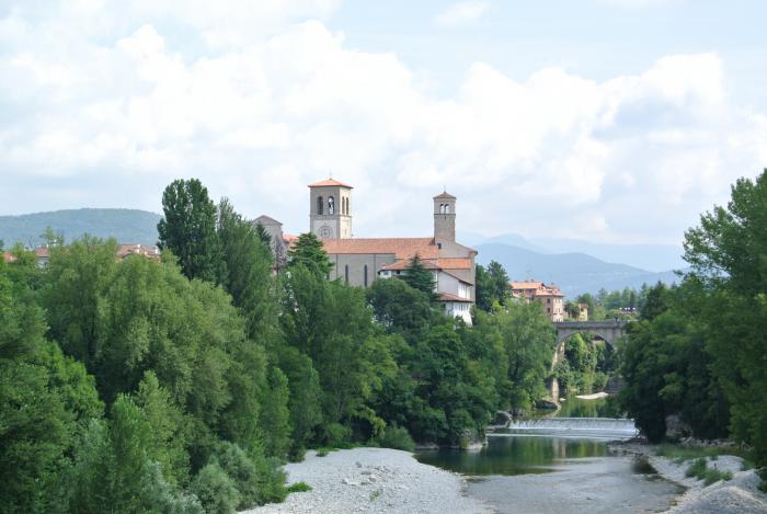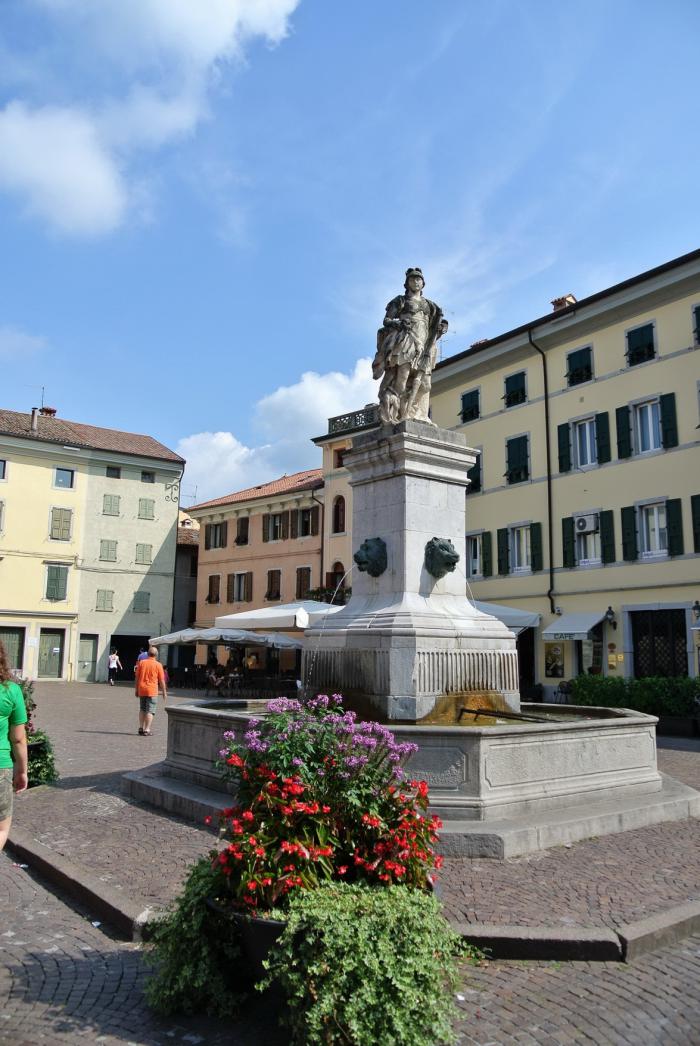 Сегодня едем в Чивиндале-дель-Фриуле. С утра Паула спросила, любим ли мы фесту? Мы ответили, что да, хотя не были в этом уверены, так как никогда подобные мероприятия не посещали. Она принесла нам журнал с расписанием этих фест. Такие праздники проходят у них ежедневно в разных населённых пунктах, а в выходные дни продолжаются с утра и до позднего вечера. Узнав, что мы собрались в Чивиндале, Паула показала нам место на берегу горной реки, где они сами любят отдыхать. Чивиндале -дель -Фриуле – маленький городок к северо-востоку от Ногаредо, фактически на границе со Словенией. Дорога туда идёт через череду фермерских хозяйств, занимающихся виноградарством. Поэтому часто встречаются таблички VINO, предлагающие напитки местных виноделов. Городок маленький, красивый, узкие улочки периодически выводят на небольшие уютные площади.