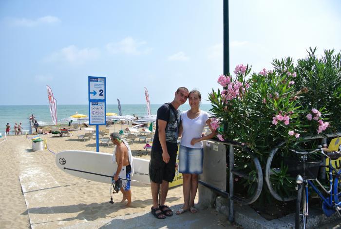 Там море было более мелкое. На пляже провели оставшуюся часть дня, поужинали в ресторане напротив, домой вернулись уже в сумерках. 12.08.2014. Сегодня в планах пляжный отдых в курортном месте Линьяно-Сабьярдо. Город Линьяно расположен между Венецией и Триестом на полуострове, который вдаётся достаточно далеко в Адриатическое море.