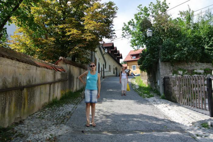 В планах было посещение Люблянского замка, но перед этим мы пообедали в одном из уличных кафе, по традиции взяв разные блюда, чтобы составить представление о том, что едят в Словении. К сожалению, не записала и, тем более не запомнила их названия, но всё было очень вкусно. К Люблянскому граду шли пешком по крутым узким, запутанным улочкам, следуя указателям (очень актуально для сжигания калорий после приёма большого количества вкусной пищи).