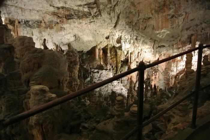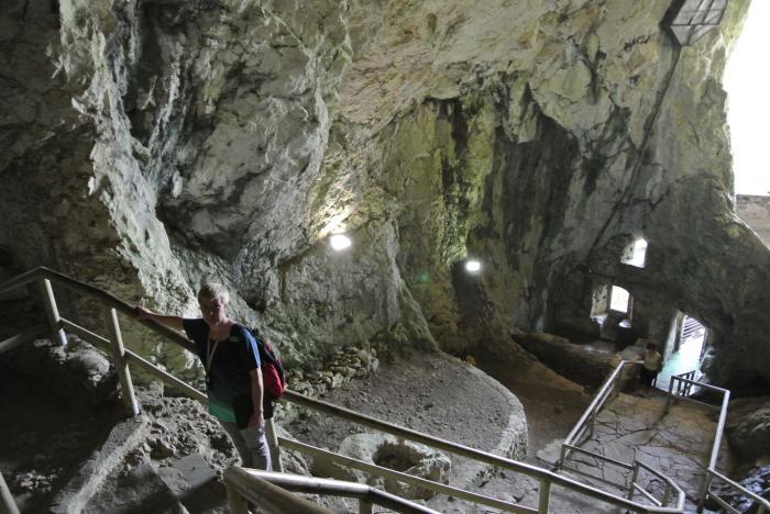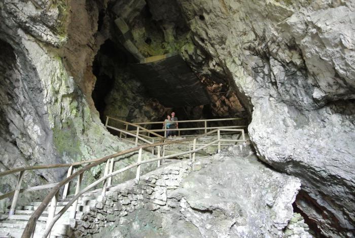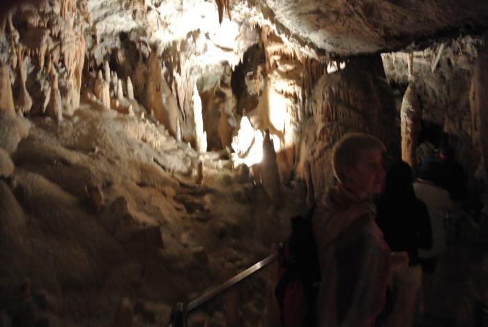 Но мы туда не полезли, а отправились в пещеру Постойнская Яма. По сути Постойнская Яма – это целая система карстовых пещер на плато Красс, общая длина которых составляет 20 000 м. Пещера образована рекой Пивка, которая протекает по ней на протяжении 800 м. Это самая длинная система пещер в Словении и Pivka Yama, где мы ночевали – является её частью. Пещеру Постойнская Яма в XVII веке обнаружил барон Янез Вайкард Вальвазор. В 1819 году её открыли для посещения всем желающим. Для удобства посетителей в 1872 году в пещере проложили железную дорогу, которую в 1884 году электрифицировали. Причём электричество пришло в пещеру раньше, чем в столицу Словении.