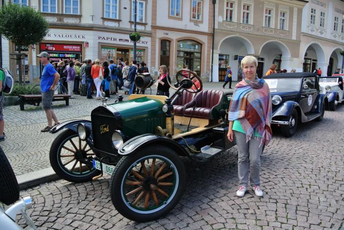 На обратном пути зашли на выставку старинных автомобилей, развёрнутую на городской площади. Пофотографировались с экспонатами.