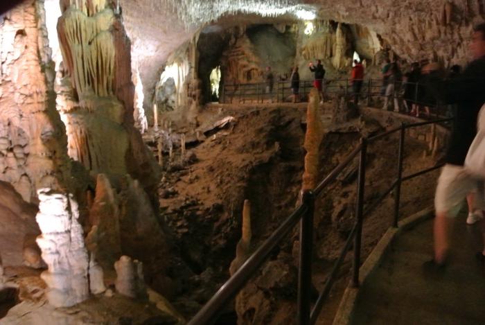 В одном из залов находится искусственный водоем с живущим там уникальным земноводным, которое в древности словенцы принимали за детеныша дракона. Его научное название – европейский протей. Словенцы же смешно называют его «чловешка рибица», что означает «человеческая рыбка». По-описанию протей довольно маленький, аквариум, где он находится, достаточно мутный, а народу, кто хочет на него посмотреть очень много – короче, то ли мы его видели, то ли нет, так и не поняли. Это малая часть информации, которую мы узнали от нашего «аудиодруга» за время экскурсии. Пещера нас потрясла своей красотой и величием. Она навеяла различные ассоциации. Я вспомнила сказку детства «Семь подземных королей» А. Волкова. Дети представили себя в Мории, вместе с героями фильма «Властелин колец». Фотографировать в Постойнской Яме нельзя. Но эта красота настолько завораживает, что по мере продвижения вглубь, сначала народ снимал украдкой, на телефон, потом уже все откровенно фотографировали всё подряд, стремясь запечатлеть эту сказку. Работники пещеры относятся к этому лояльно. Поездка на поезде внутри пещеры впечатлила не меньше, чем пешая часть экскурсии. Железная дорога петляет по тоннелям, то скрываясь в полной темноте, то, вдруг неожиданно врываясь в очередной зал и снова уходя в узкий подземный ход.