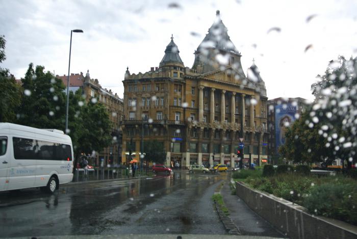 А потом нас накрыло таким ливнем, что не было видно ни Пешта, откуда мы только что пришли, ни даже Дуная. Вместе с другими туристами мы попытались укрыться под одним из пролётов лестницы, ведущей на холм. Собралась небольшая компания, которая разделилась по принципу «туда» и «оттуда». В какой-то момент наверху набралась критическая масса воды, и по лестнице хлынул мощный поток, и мы оказались по колено в воде, причём грязной. Короче, этот ливень нарушил все наши планы осмотра города.