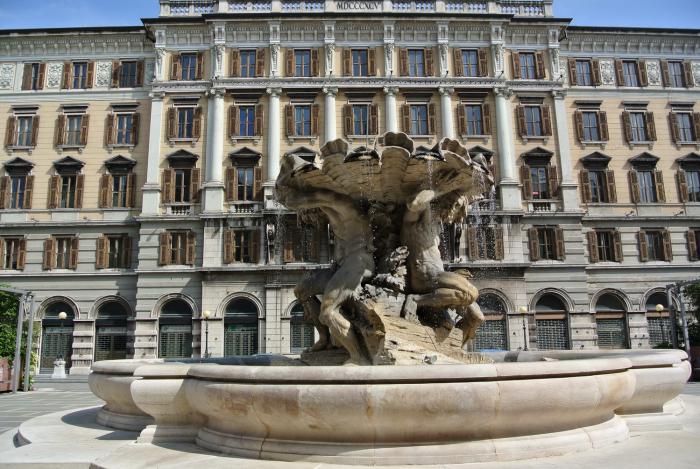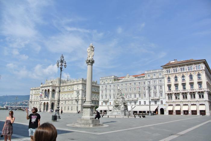 Дошли до Большого канала, он создан искусственно, и как бы заводит море в центр города, соединяя его с площадью Объединения Италии. Сама площадь прямоугольной формы, большая и помпезная. Тут находится колонна со статуей Карла VI, старый фонтан в барочном стиле, Дворец Правительства, построенный в византийском стиле и много других дворцов, названия которых мы не запомнили. Вообще, это место напомнило Санкт-Петербург.