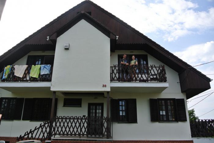 Обратно вернулись на экскурсионном паровозике. Ещё раз прошли по старому городу, Саня купил на память книгу «Преступление и наказание» на словенском языке и пытался её читать. Словенский язык понятен, поэтому текст был узнаваем. Ночлег у нас был запланирован в местечке Пивка, километрах в 60 от Любляны в кемпинге Pivka Jama. Туда мы добрались уже достаточно поздно. Кемпинг оказался в очень живописном месте, среди леса, у нас был уютный домик с террасой.