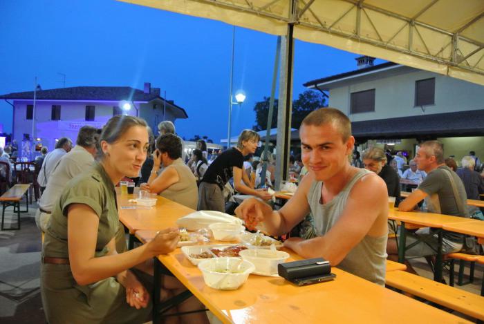 На обратном пути нас остановила полицейская машина, проверили документы. Это был единственный случай общения с полицией в этом путешествии, включая и дорогу по России. А вечером поехали на фесту в местечко Delle Mura. Огромная площадка под открытым небом была разделена на зоны. Судя по программе, с утра там были какие-то детские мероприятия. Когда мы подъехали, только что закончился рок-концерт, и навстречу нам шла публика соответствующего вида.