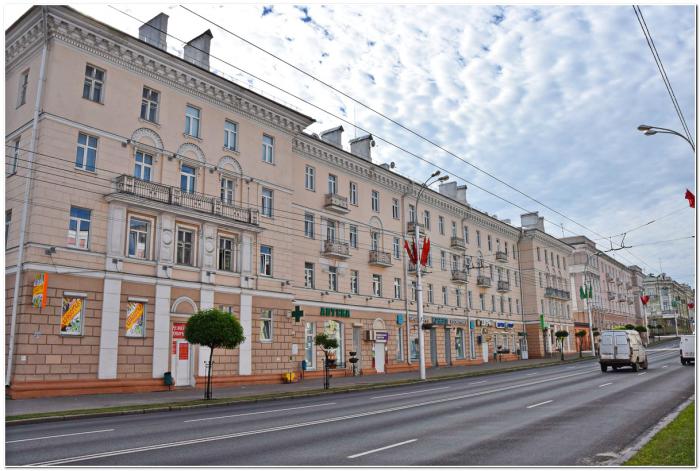 В годы фашистской оккупации она называлась Гитлерштрассе. Это лишнее подтверждение тому, что данная улица является главной магистралью Гомеля, поэтому её архитектурному ансамблю стоит уделить повышенное внимание. Важно лишь было найти «точку отсечки» — границу между банальным и оригинальным. Таковой, как мне думается, является «сталинская» башня со шпилем.