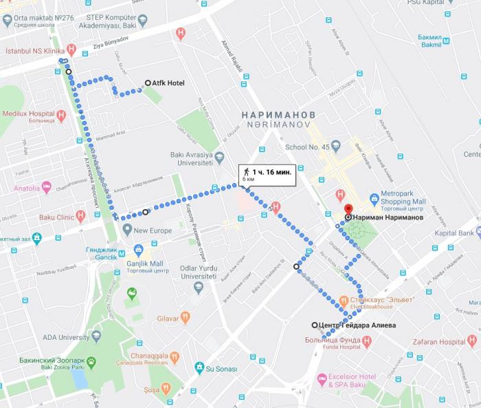 Разумеется, что утро среды 5 июля 2017 года началось для нас с гостиничного завтрака. После чего мы не мешкая выбрались наружу и поспешили на станцию метро «Гянджлик». Притормозили лишь у попутной автомойки, где я попытался договориться на завтра о том, чтобы отмыть машину от калмыцкой саранчи. Но, как впоследствии оказалось, моё неожиданное «здравствуйте» так испугало работника, что он напрочь забыл даже тот весьма скудный набор русских слов, который, возможно, знал.