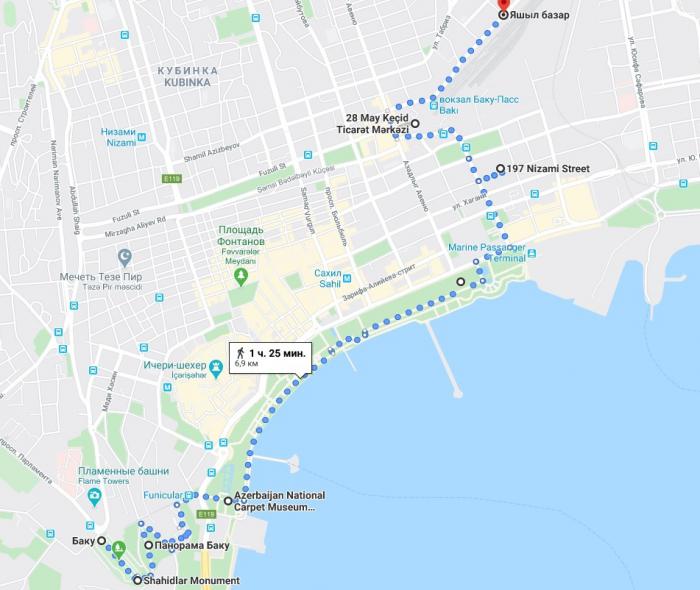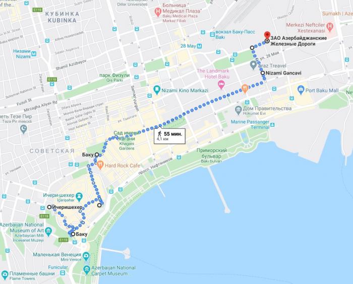 Доехав на метро до станции «Ичери-шехер», мы взяли курс на «Пламенные башни».