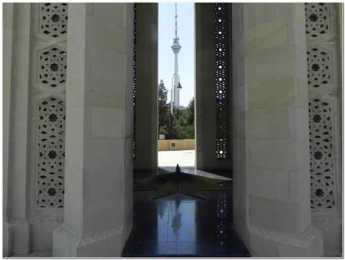 Кстати, сам мемориал довольно любопытен, ибо имеет форму традиционного для Азербайджана мавзолея. Мы с такими объектами будем сталкиваться ещё не раз.