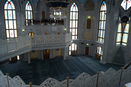 Кремль, как Кремль, если б не одно «но»: мечеть Кул-Шариф на его территории, которая гармонично вписалась в общий архитектурный ансамбль, хотя эта постройка 1996 года. Говорят, она может вместить до 8 тысяч человек, хотя у меня возникли сомнения по этому поводу после того, как мы побывали внутри.