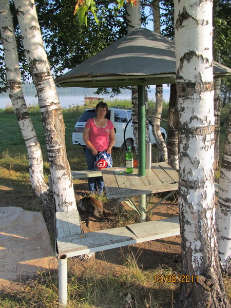 На участке от Осы до Крюково дорога на Чайковский идет паралельно Каме, поэтому когда желудок подсказал что пора подкрепиться мы выбрали ближайшую своротку в сторону реки и попали в деревню Пакли стоящую на самом берегу Воткинского водохранилища. Местные любители пляжно-шашлычного отдыха организовали возле самой воды укромное и уютное местечко с грибочком и мангалом где в качестве хозяев нас встетила парочка весьма упитанных котов.