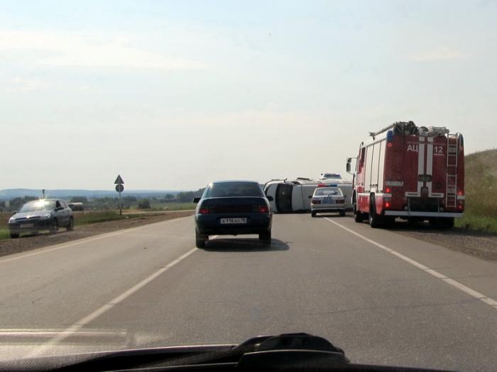 В Ижевск мы въехали в час дня. Объездной дороги в городе нет и транзит идет фактически через центр, но магистральный участок местами достигает четырех полос в каждую сторону, поэтому пробок не видели и проскочили через город очень быстро, всего за 30 минут. На выезде из Ижевска опять авария, теперь на боку лежит Газель и похоже без жертв не обошлось.