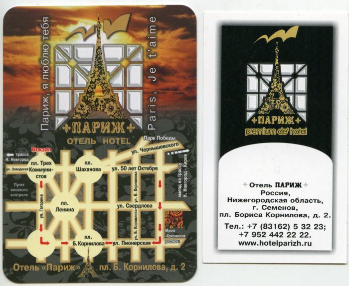Ночь нас застала на подъезде к городу Семенов. Спросив у местных ребят где тут лучше всего переночевать, я получил ответ в «В Париже». С начала ответ мной был воспринят как дерзкая шутка, но позже ребята объяснили что это самая лучшая в городе гостиница, к тому-же расположенная в самом центре. Название отеля, как оказалось, весьма символическое. В «Париже» 21 номер, все новое и весьма приличное. Удобно что сутки считаются с часа заселения.