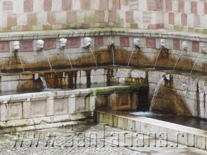 С тех пор мы несколько раз ездили в Аквилу по делам, и я даже читала лекции в университете на итальянском языке. Каждый раз Джанмарко показывал еще какую-нибудь уцелевшую достопримечательность. Прошлой зимой мы посетили знаменитый фонтан 99 струй, построенный в конце XIII века по проекту архитектора Танкреди де Пентима. К счастью, он не особенно пострадал от землетрясения.