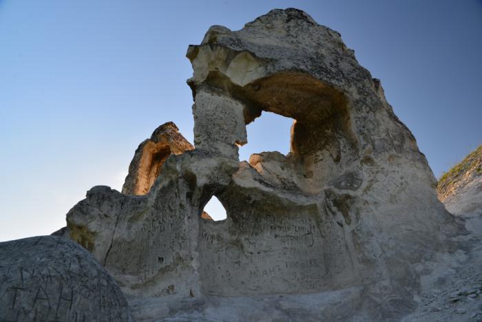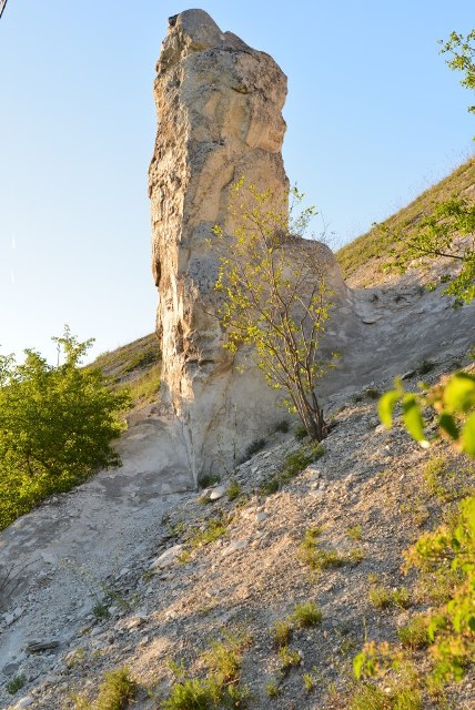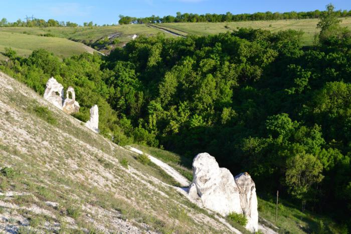 2. «Дивы» — это меловые столбы и скалы из крепкого мела, возвышающиеся над поверхностью меловых склонов. «Дивом дивным» назвал их патриарх Тихон, направляющийся по Дону в Константинополь. Он же с грустью отметил необычайное запустение и безлюдность этих мест.