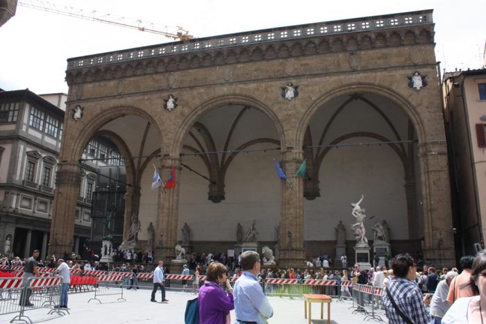 и Лоджия Ланци, которая в настоящее время представляет собой музей под открытым небом, где размещается экспозиция скульптурных произведений из собрания близлежащей Галереи Уффици