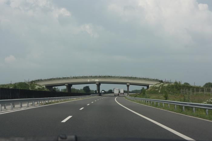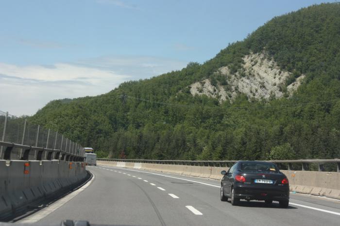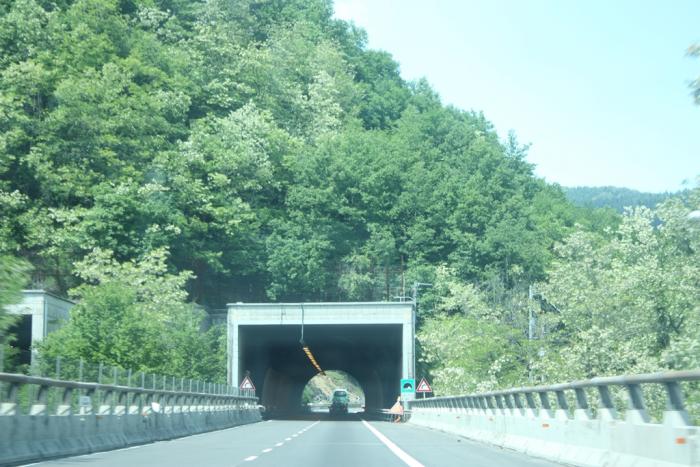 В Римини ехали по платной дороге. Очень много тоннелей.