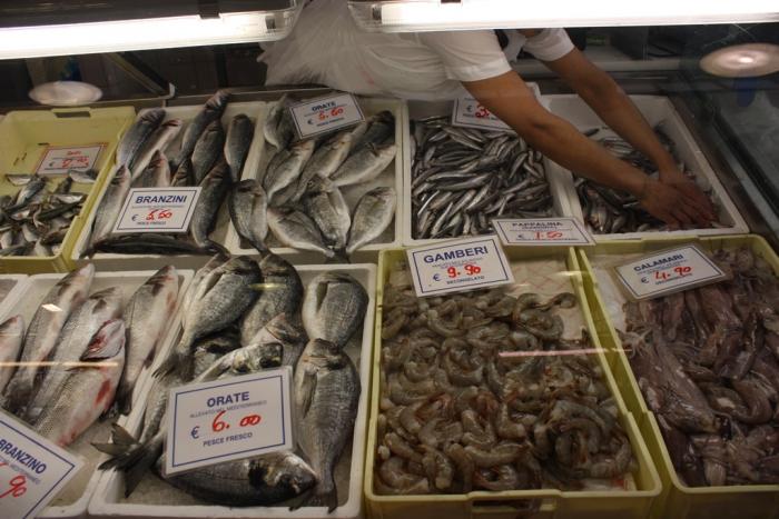 Утром проснулись и снова погода была не предназначенная для купания. Как и собирались поехали на рыбный рынок. На парковке у рынка услышали русскую речь: «Седан? Да еще и номера ростовские? Впервые вижу в Италии!». Оказалось семья (муж и жена) сами из Ростовской области, давно живут в Италии, они были ТАК рады увидеть земляков!!! Разговорились и они сказали, что видели машины с российскими номерами, но именно ростовские ни разу. Потом они нас еще в гости приглашали, но как-то неудобно было…