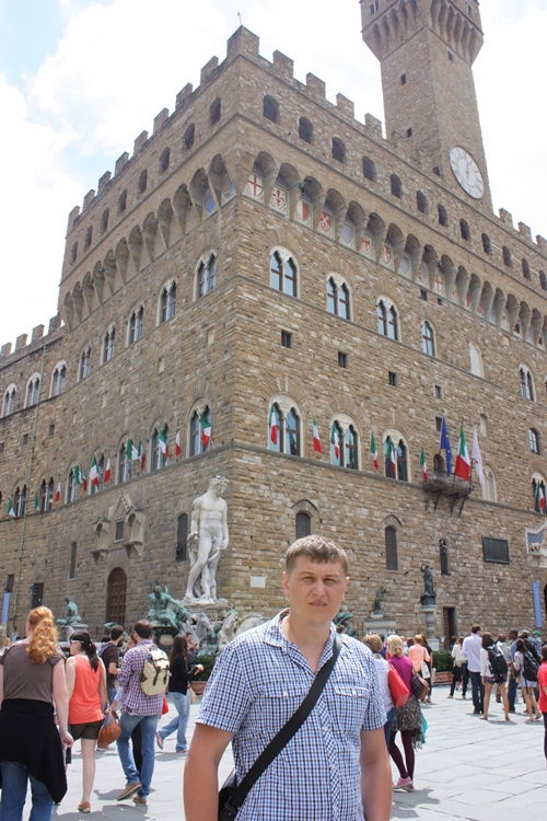 На площади Синьории находится Палаццо Веккьо — Правительственное здание — ратуша Флоренции