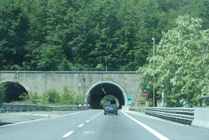 Перед тоннелем обязательно стоит светофор на случай, если в тоннеле что-то случится, чтобы перекрыть движение. Еще одна особенность платных дорогах Италии — у них нет съездов (вот не помню есть ли развороты, такое впечатление, что нет). Как нам рассказывала одна женщина из Римини — если случится авария, то в пробке можно простоять 5 часов и более, и нет возможности никуда съехать.