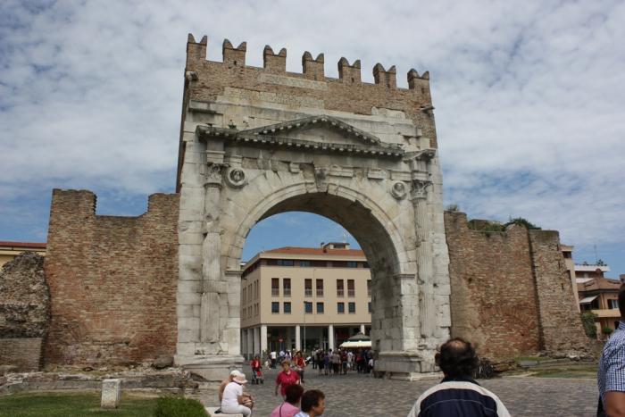 Из пяти дней в Римини погода позволила купаться только 2 дня. В остальное время мы все время куда-то ездили. Посетили центр Римини. Собственно мы ехали на вещевой рынок, который, как пишут в интернете, работает 2 раза в неделю. И в один из обозначенных дней мы его не нашли. Точнее его не было там, где было описано. А писали, что рынок начинается сразу за Аркой Августа.